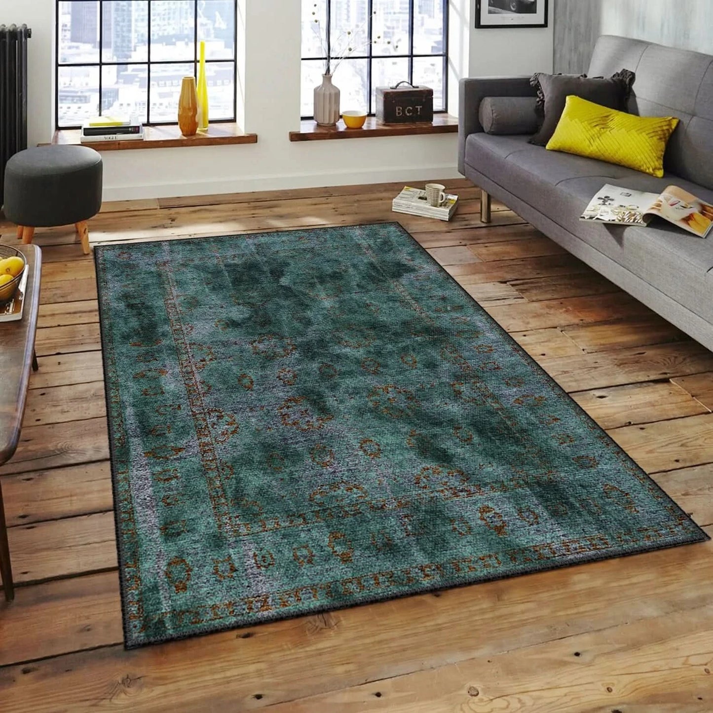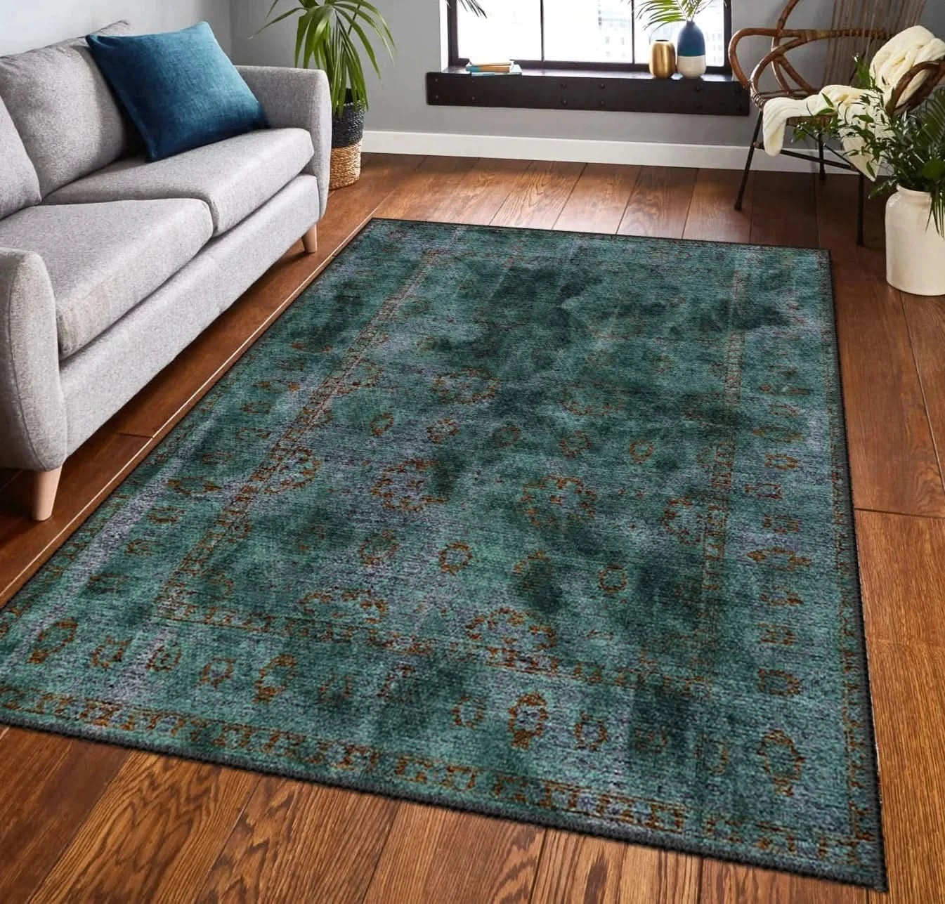 Turkuaz Vintage Desenli Halı - M61