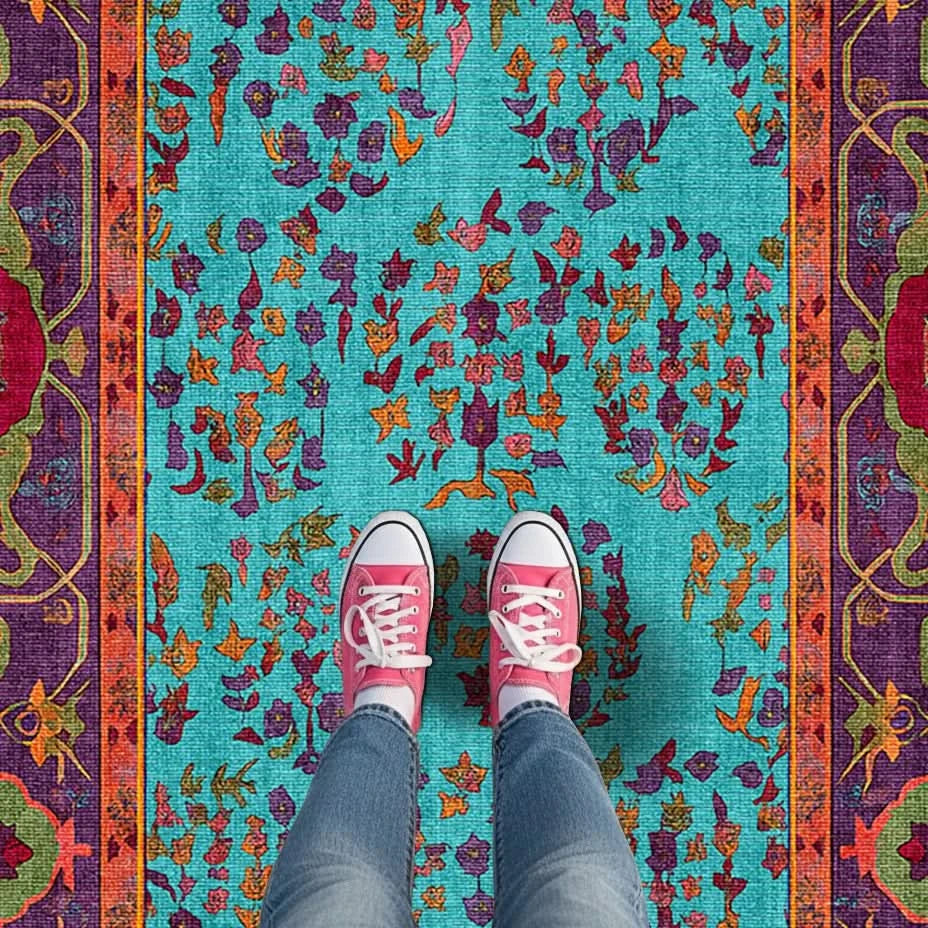 Canlı Çiçekler – Mavi ve Pembe Renkli Canlı Desenli Halı - TK 1