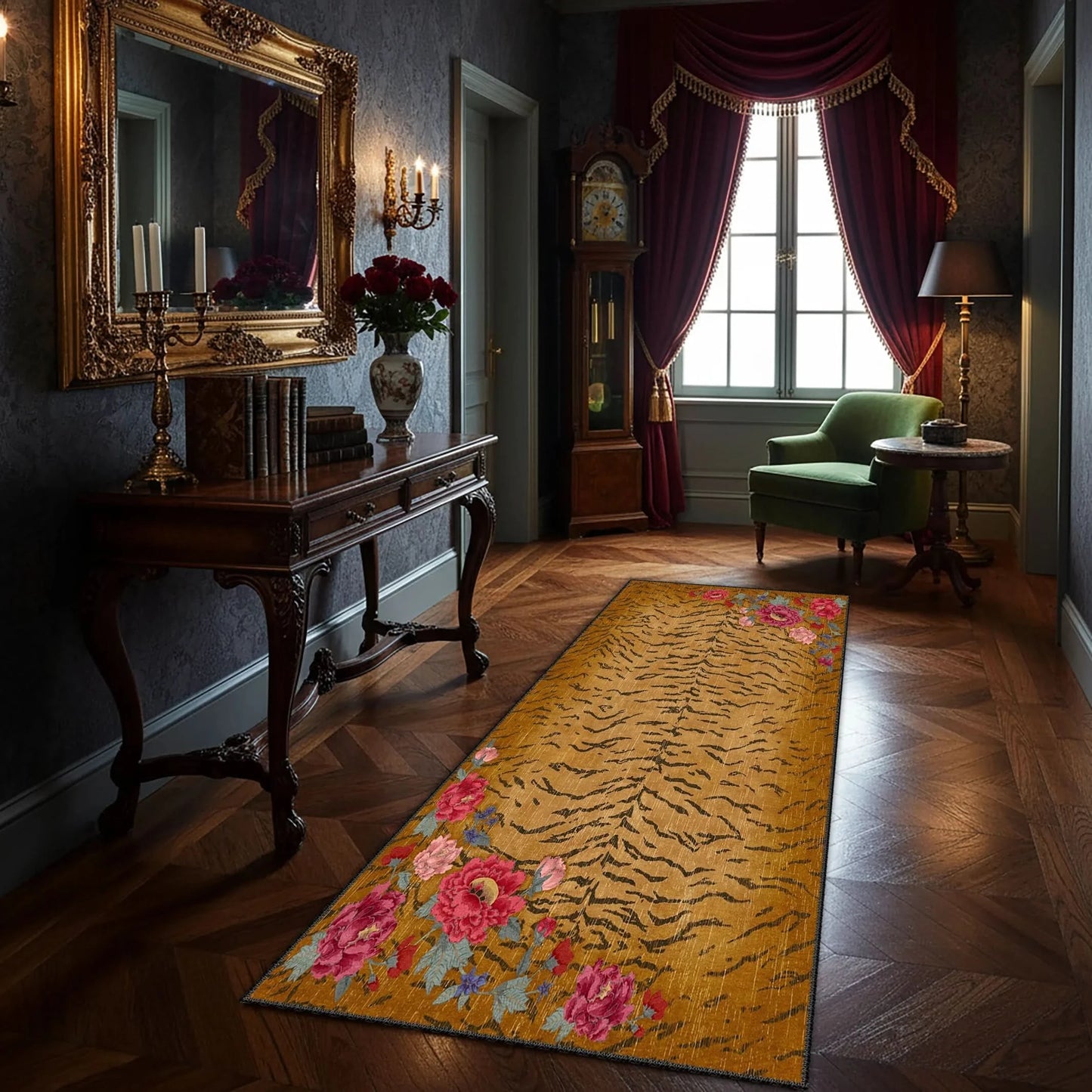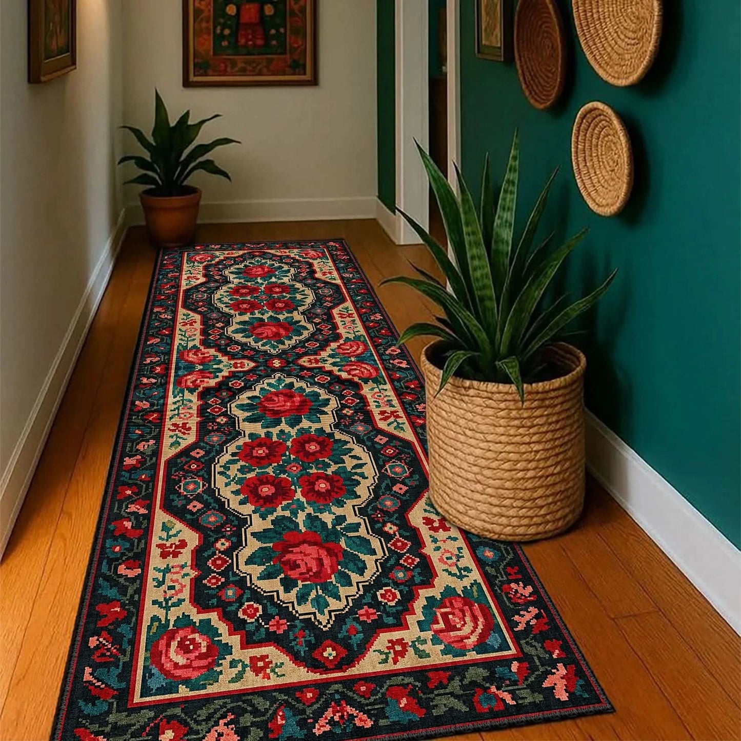Çiçek Desenli Yeşil Vintage Yolluk – NW 83