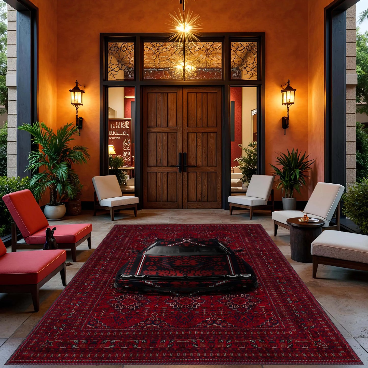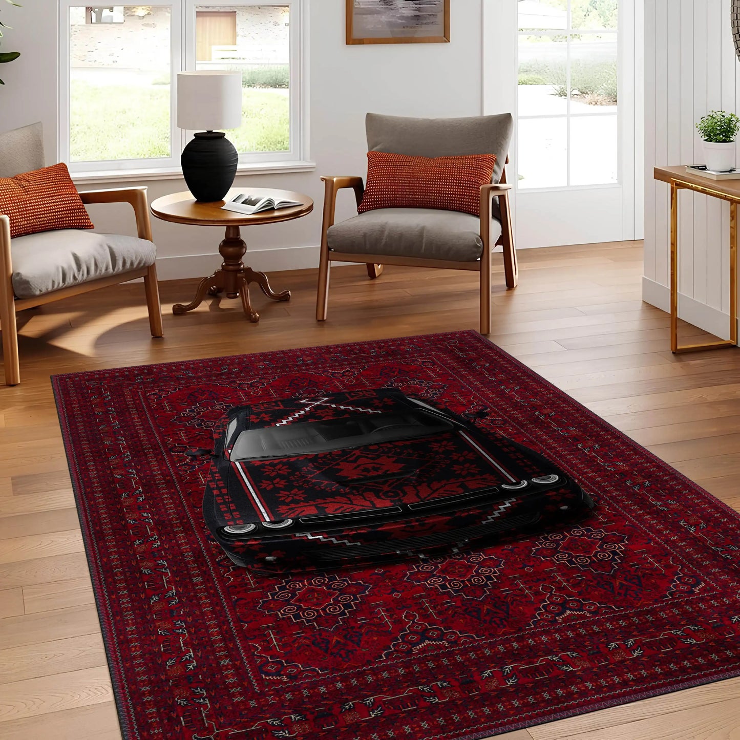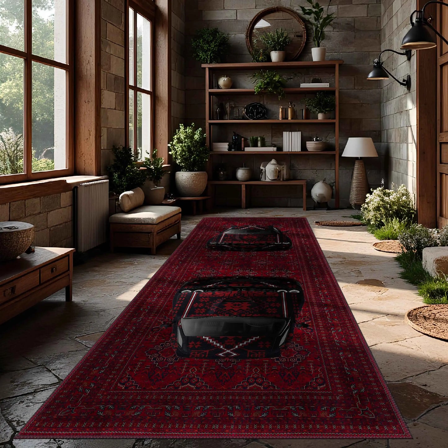 Kırmızı, bej ve siyah tonların cesur geçişleri, yaşam alanlarına enerjik bir atmosfer kazandırırken Türkmen motiflerinin otantik dokusu, tasarıma tarihi bir derinlik katıyor. Hem klasik hem de modern dekorasyonlarda dikkat çekici bir odak noktası oluşturur. Salon, çalışma odası veya ofis gibi alanlarda güçlü bir estetik ifade yaratır.