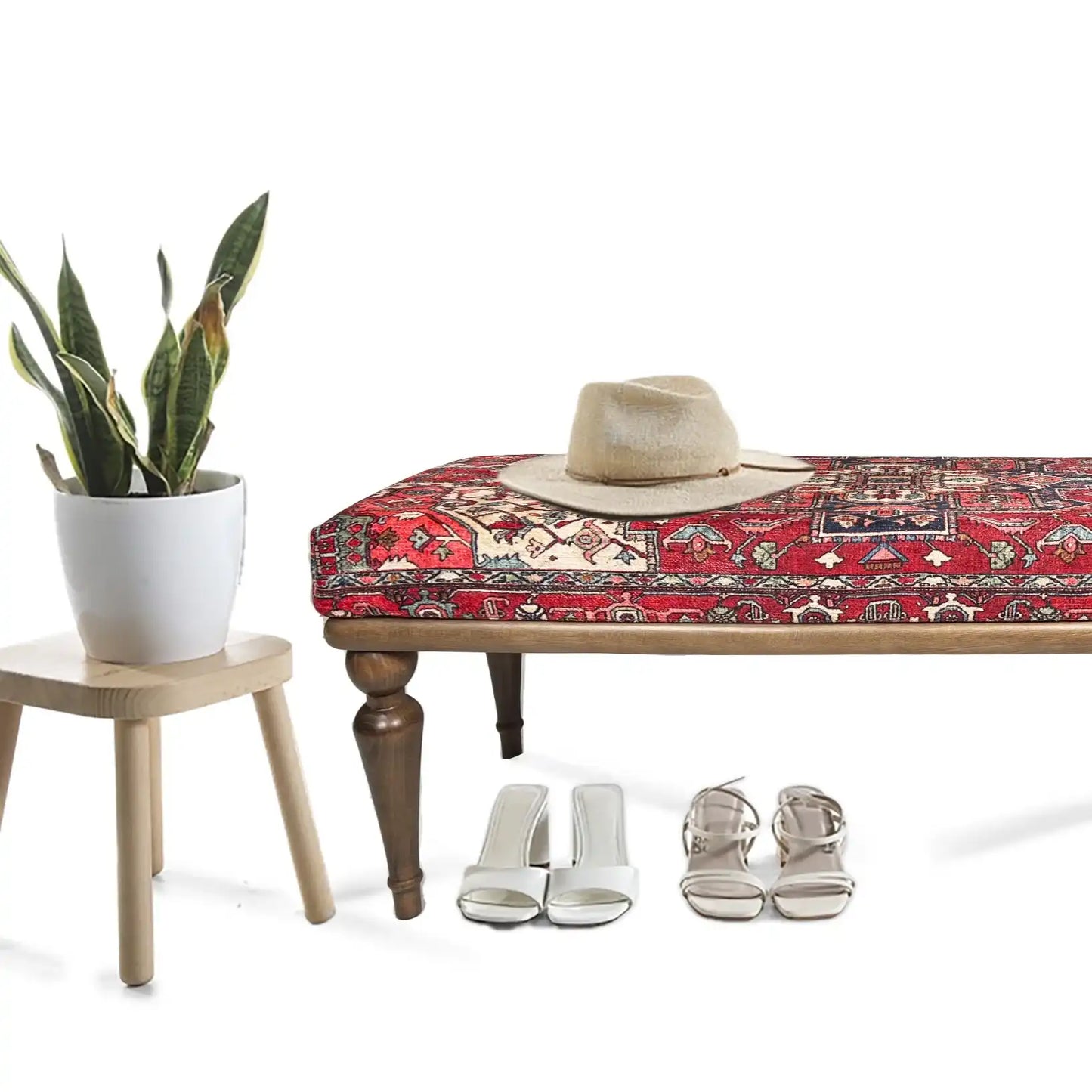 Kilim Döşemeli Vintage Ahşap Bank - 1412