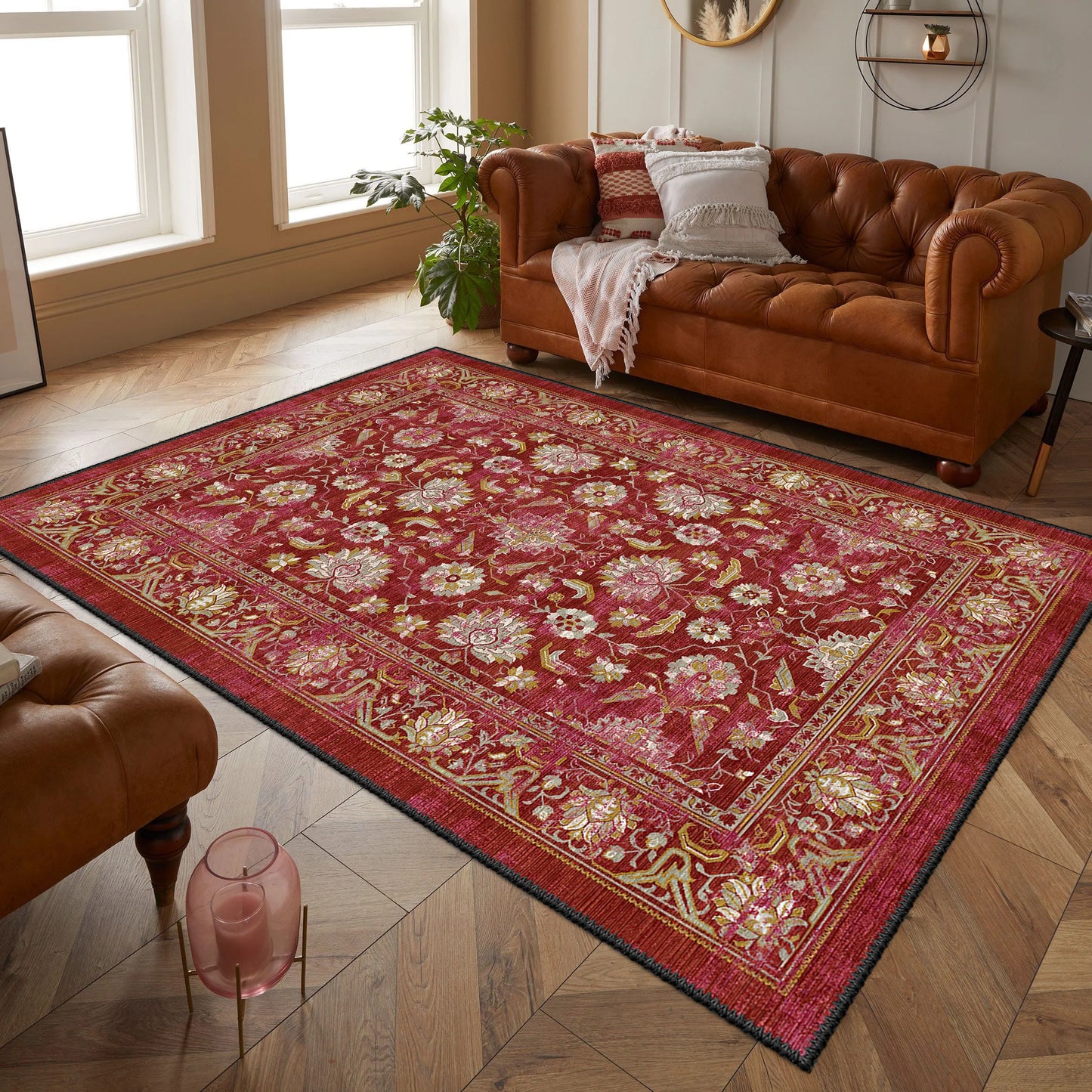 Hayat Ağacı Desenli Kırmızı Halı / 50% İNDİRİM