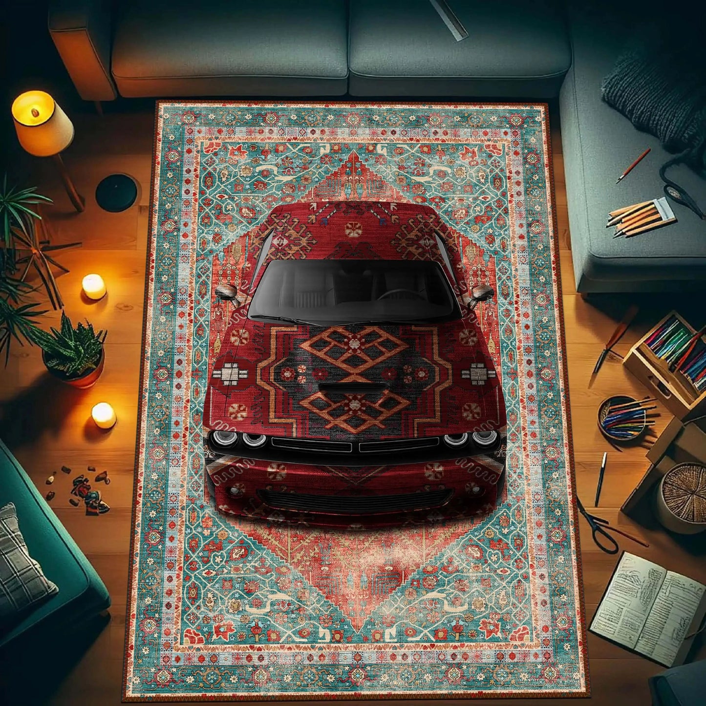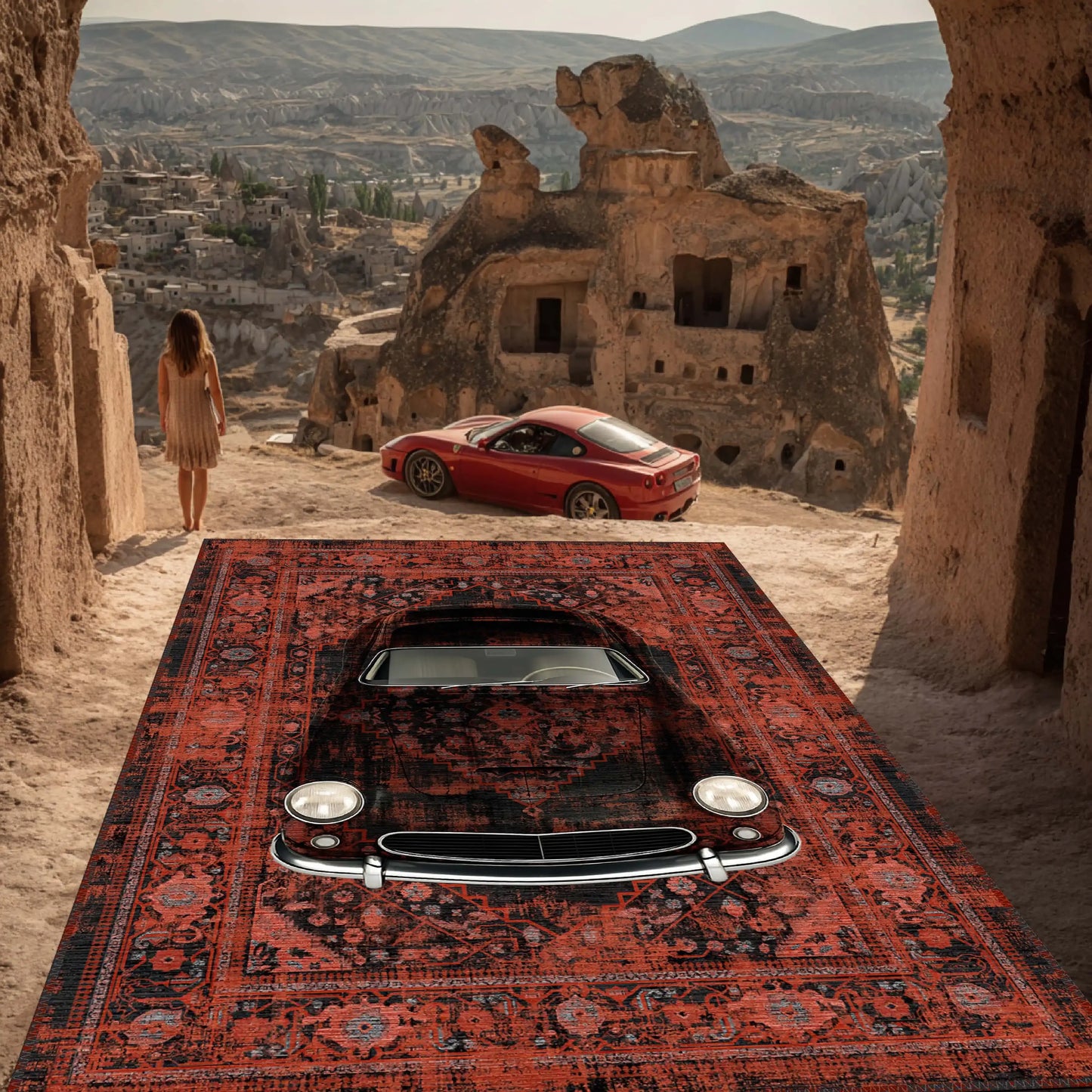 Porsche 911 Desenli Kırmızı Oriental Halı - KL 268
