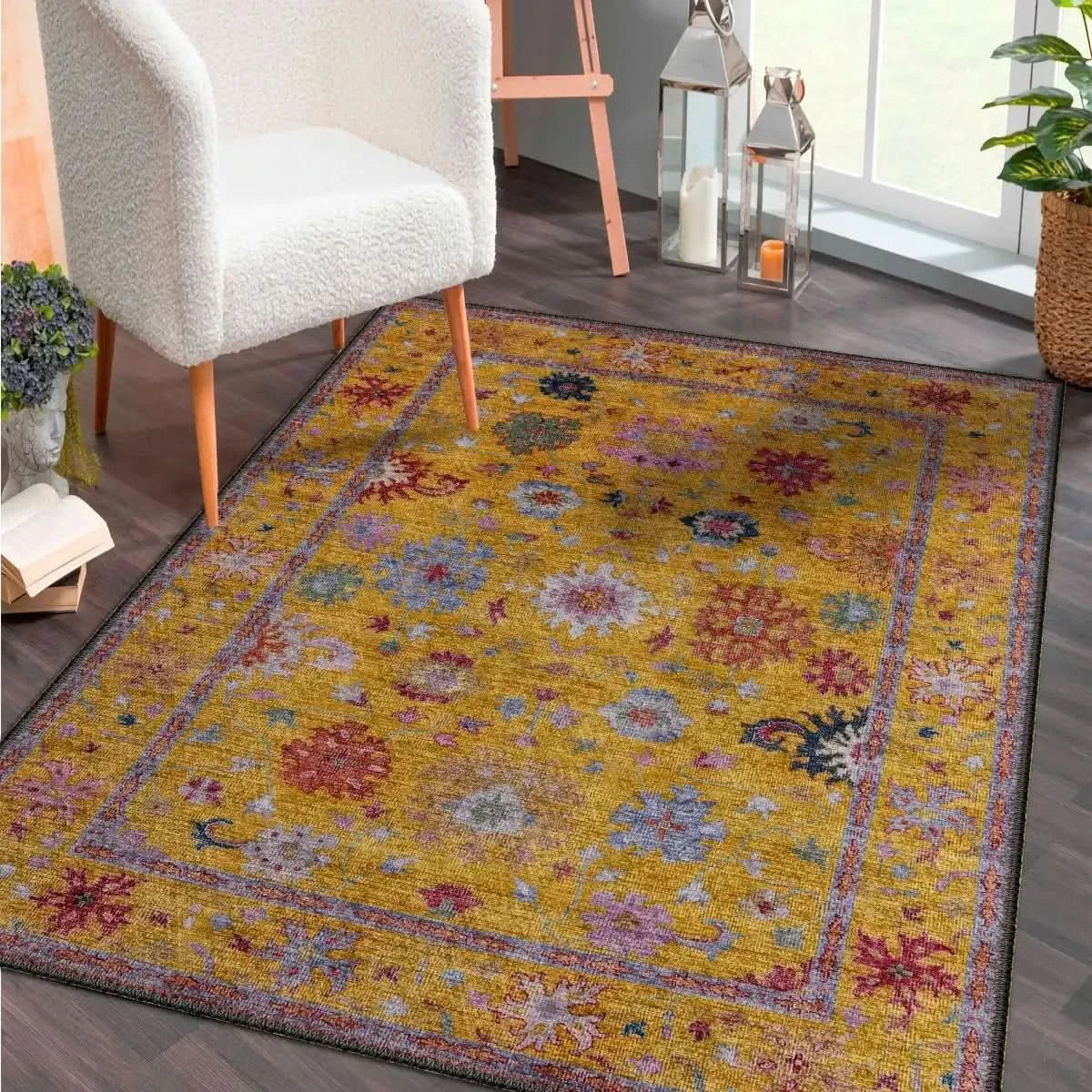 Vintage Desenli Etnik Dokulu Yıkanabilir Halı - D3