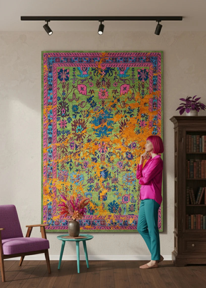 Modelin modern çizgisi, farklı dekorasyon tarzlarıyla uyum sağlayarak mekanınıza hem özgün hem de dikkat çekici bir görünüm kazandırır. Canlı tonların uyumlu ahengi, halıyı bulunduğu alanda güçlü bir odak noktası haline getirir.
