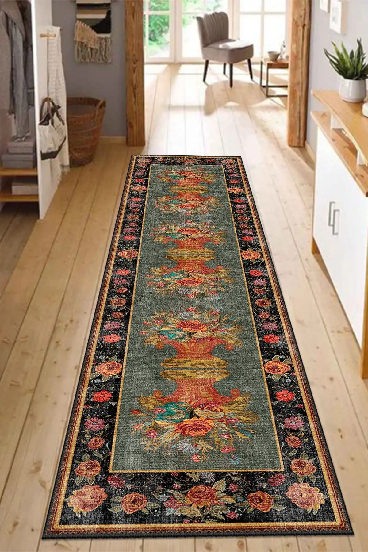 Barok Renklerde Çiçek Vazo Desenli Halı – NW 08