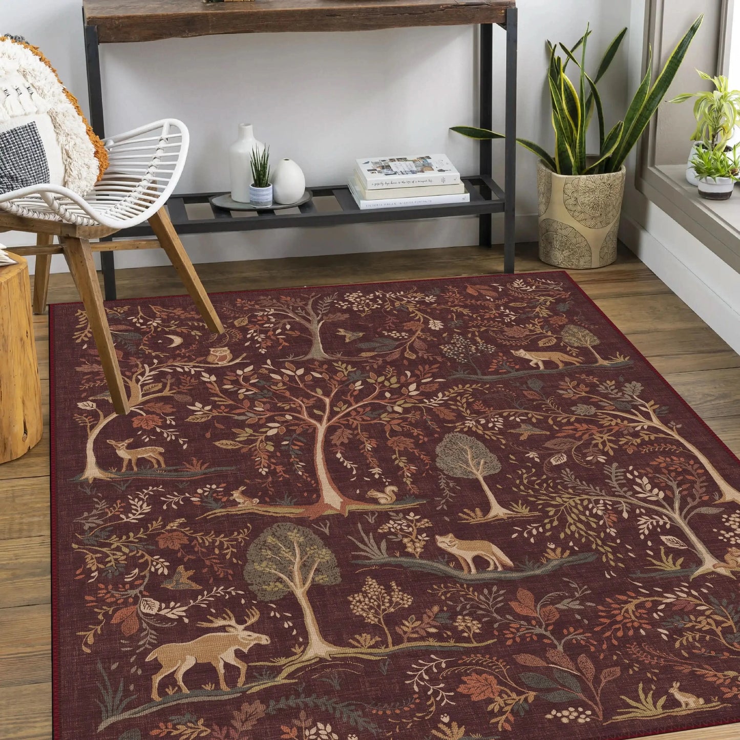 Doğanın Kalbinde Gece: Ay Figürlü Orman Desenli Halı – NW 198