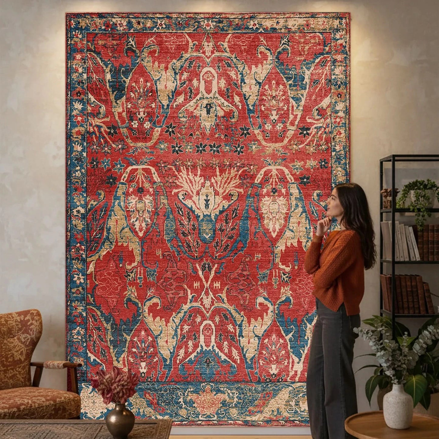 Hayat Ağacı Desenli Kırmızı Halı / 50% İNDİRİM
