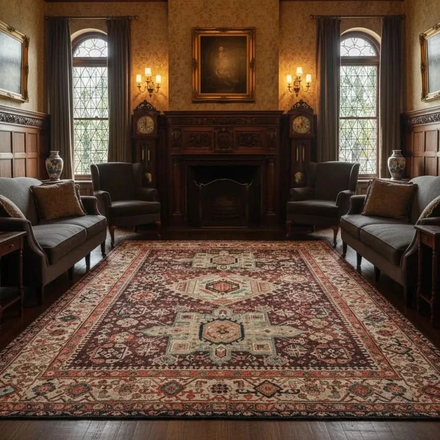 Antik Zeytin Yeşili Vintage Halı – Yıkanabilir & Şık Tasarım