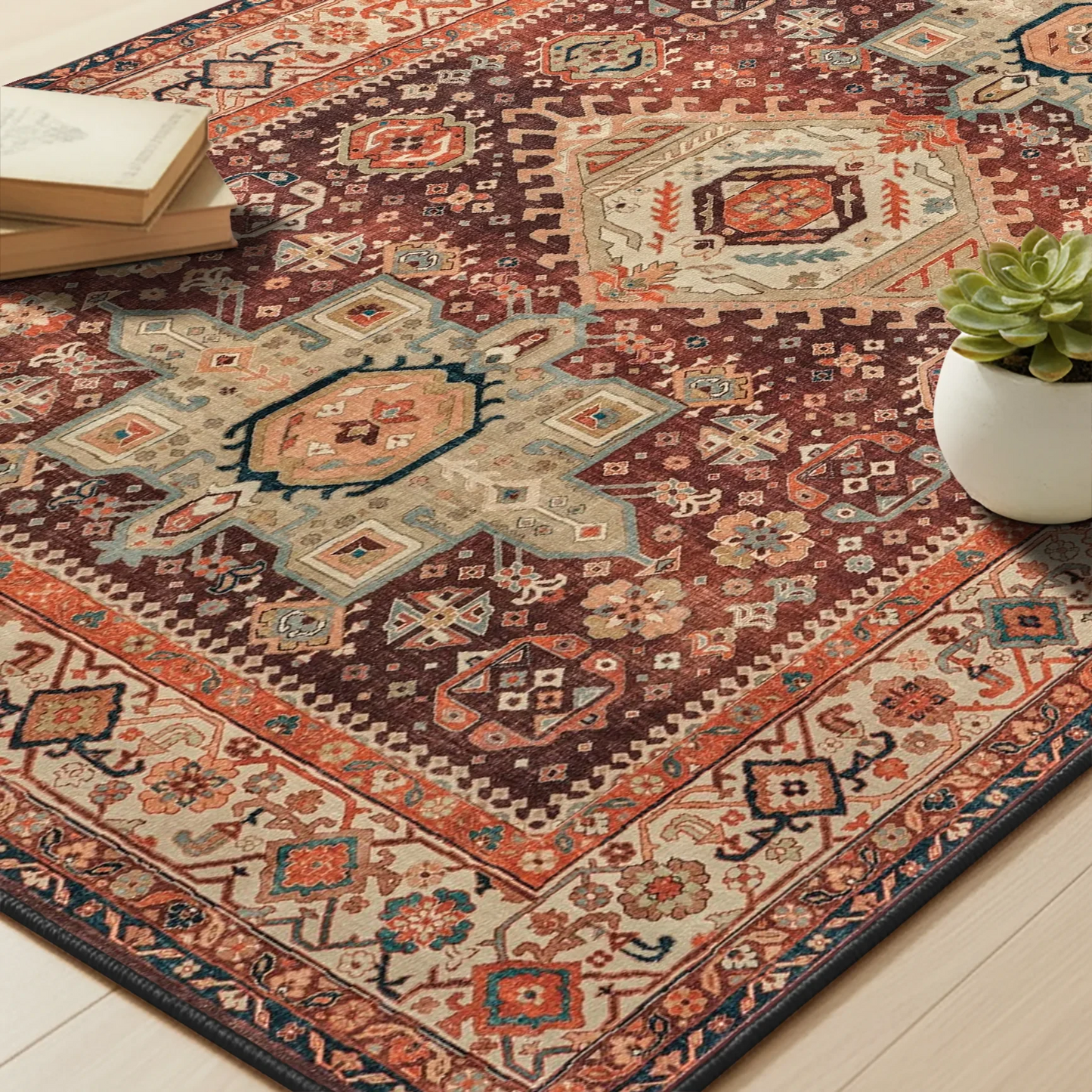 Bordo Rustik Tarz Yıkanabilir Halı - TK 39