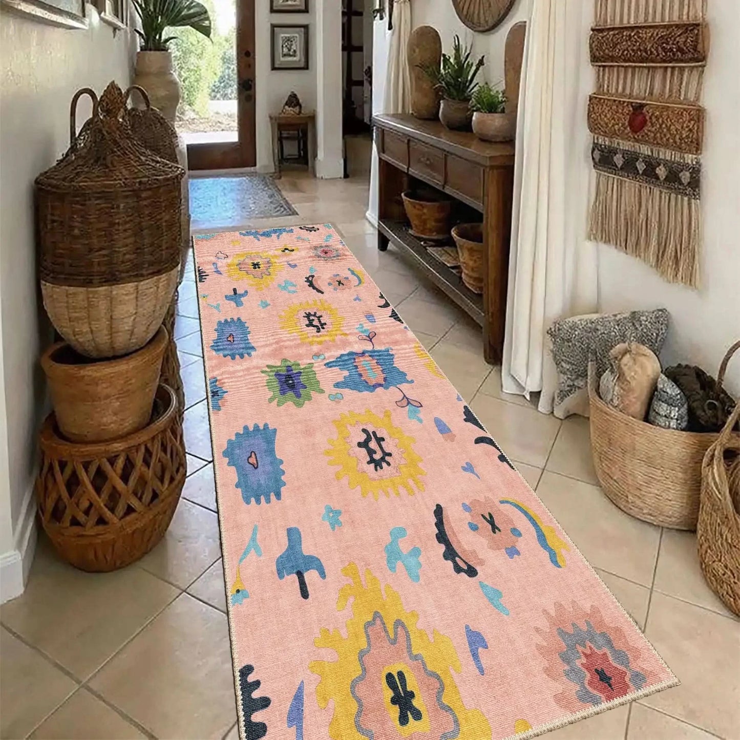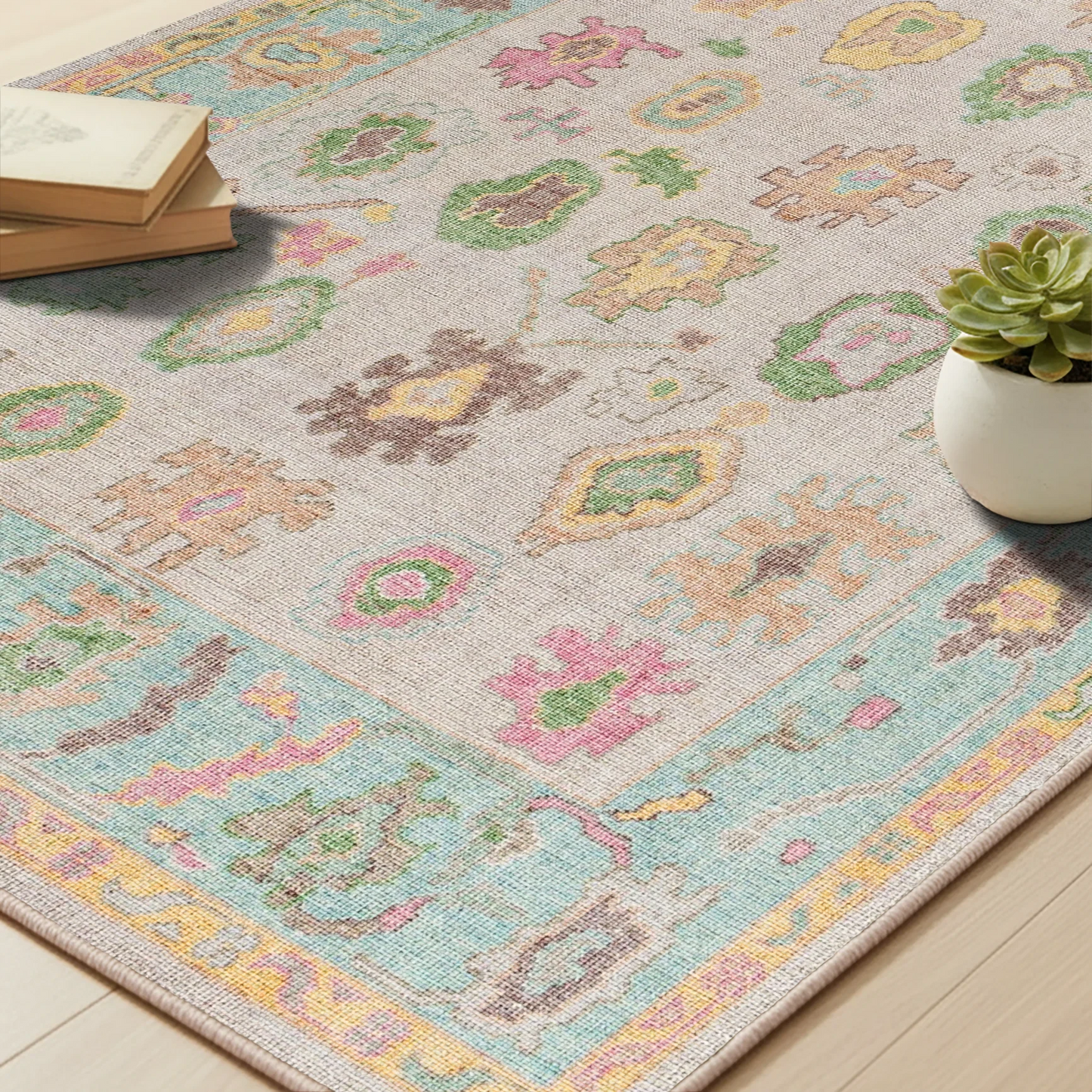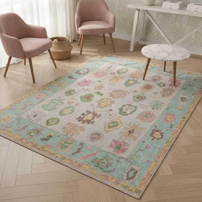 Renklerin Zarif Dansı – Turkuaz ve Pembe Desenli Halı - MV 3986