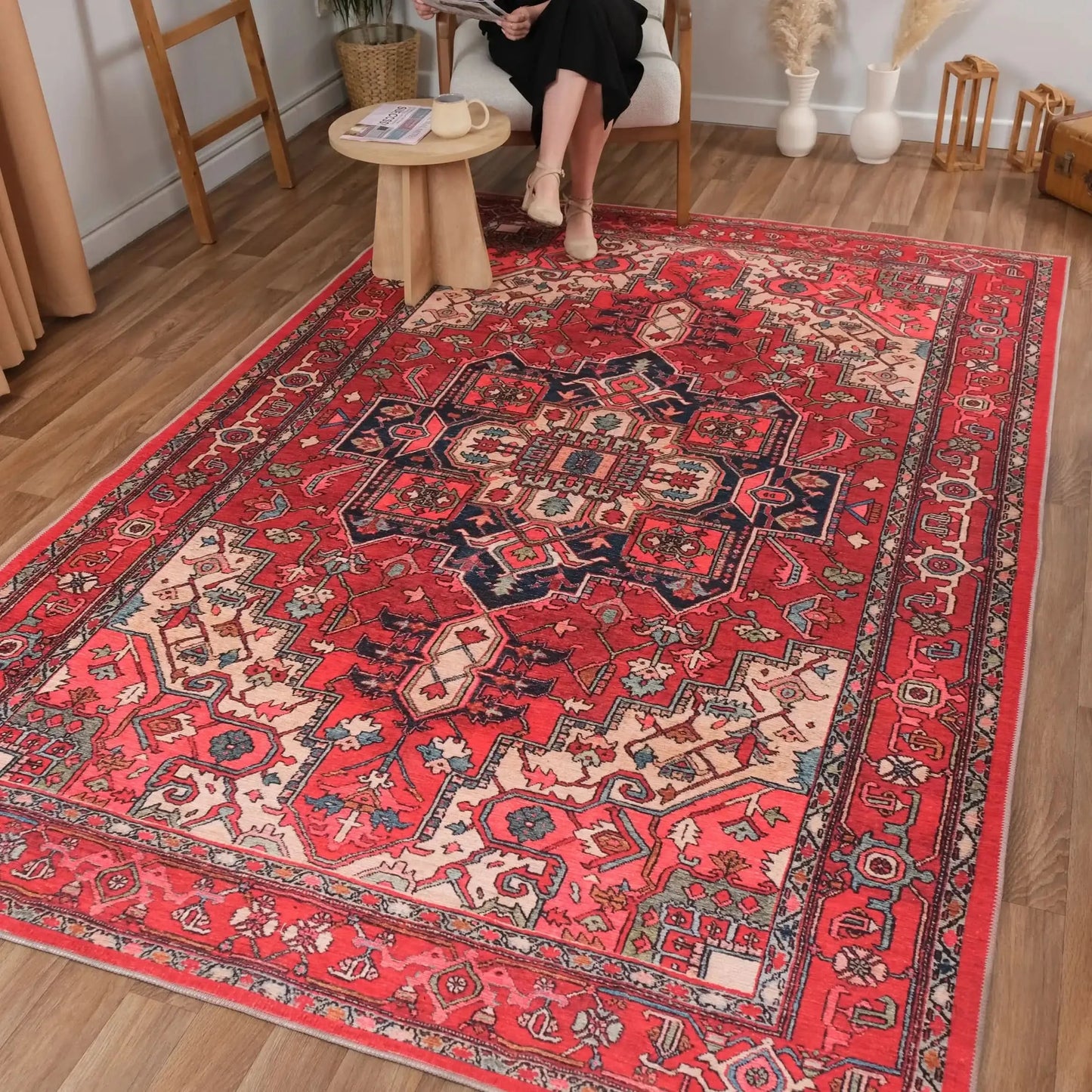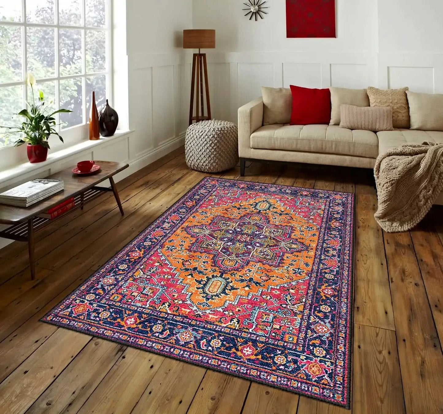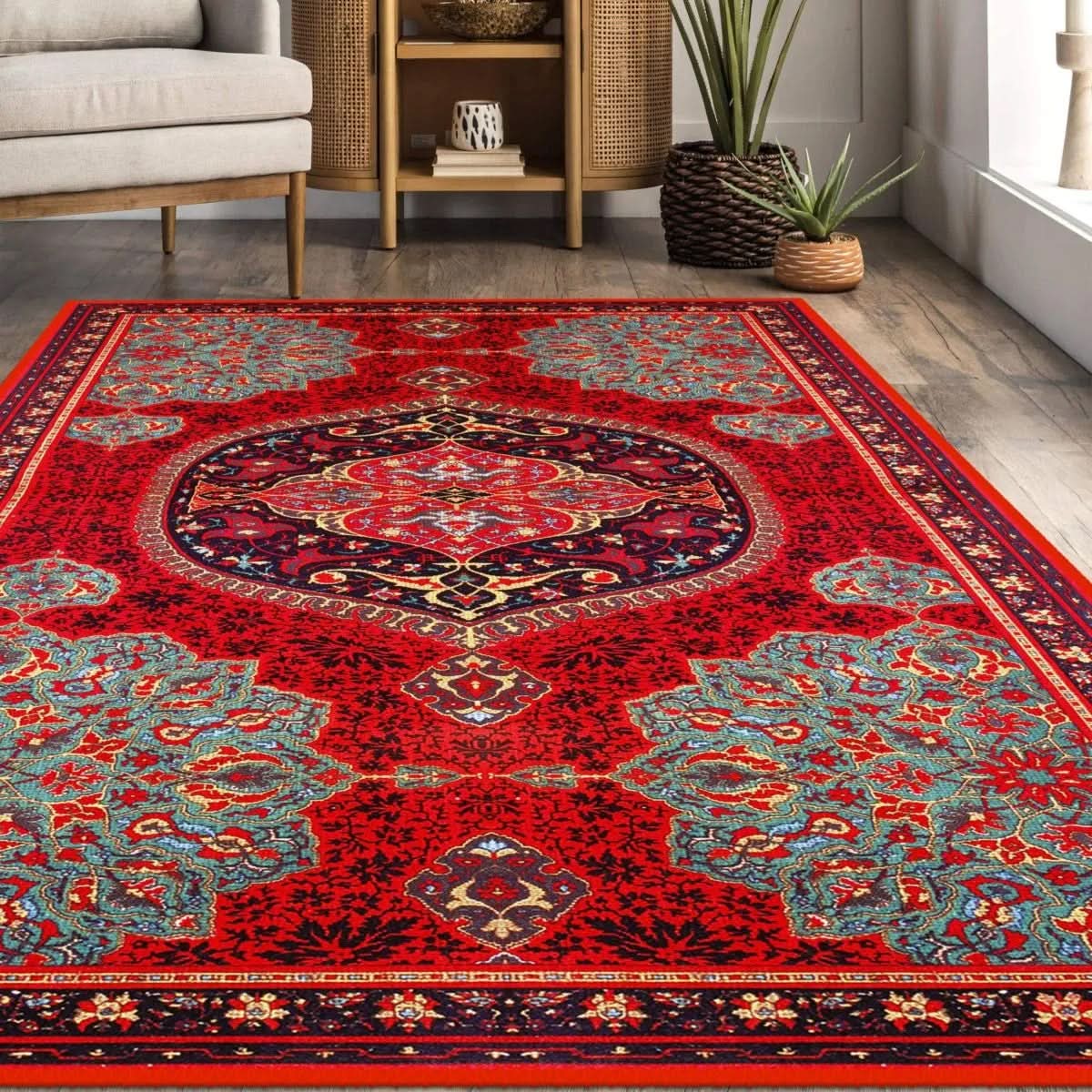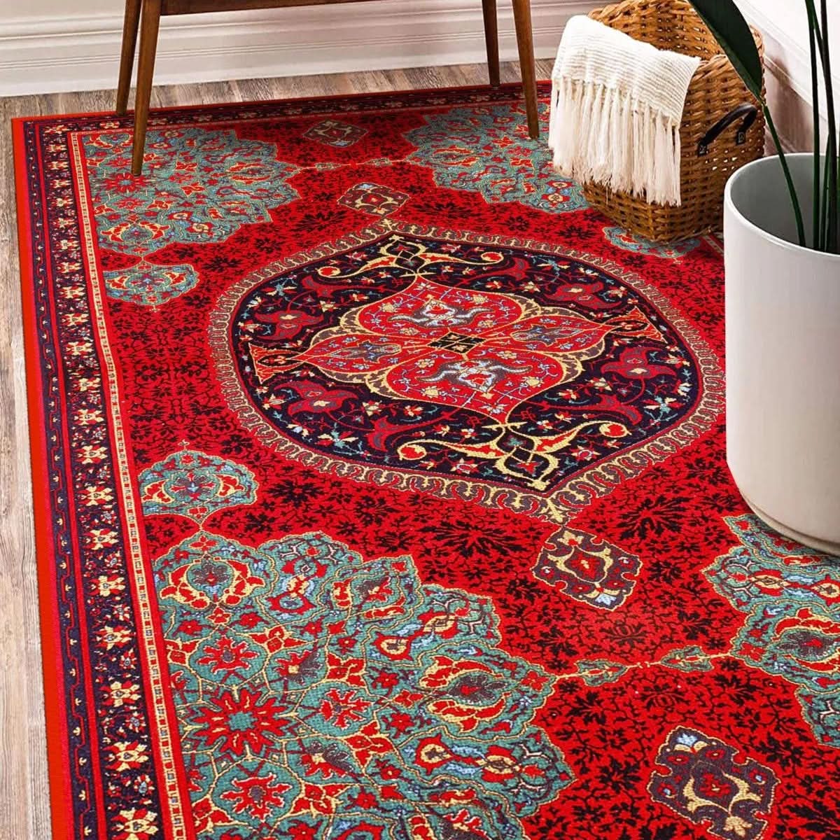 Estetik Harmoni – Mavi & Kırmızı Desenli Halı