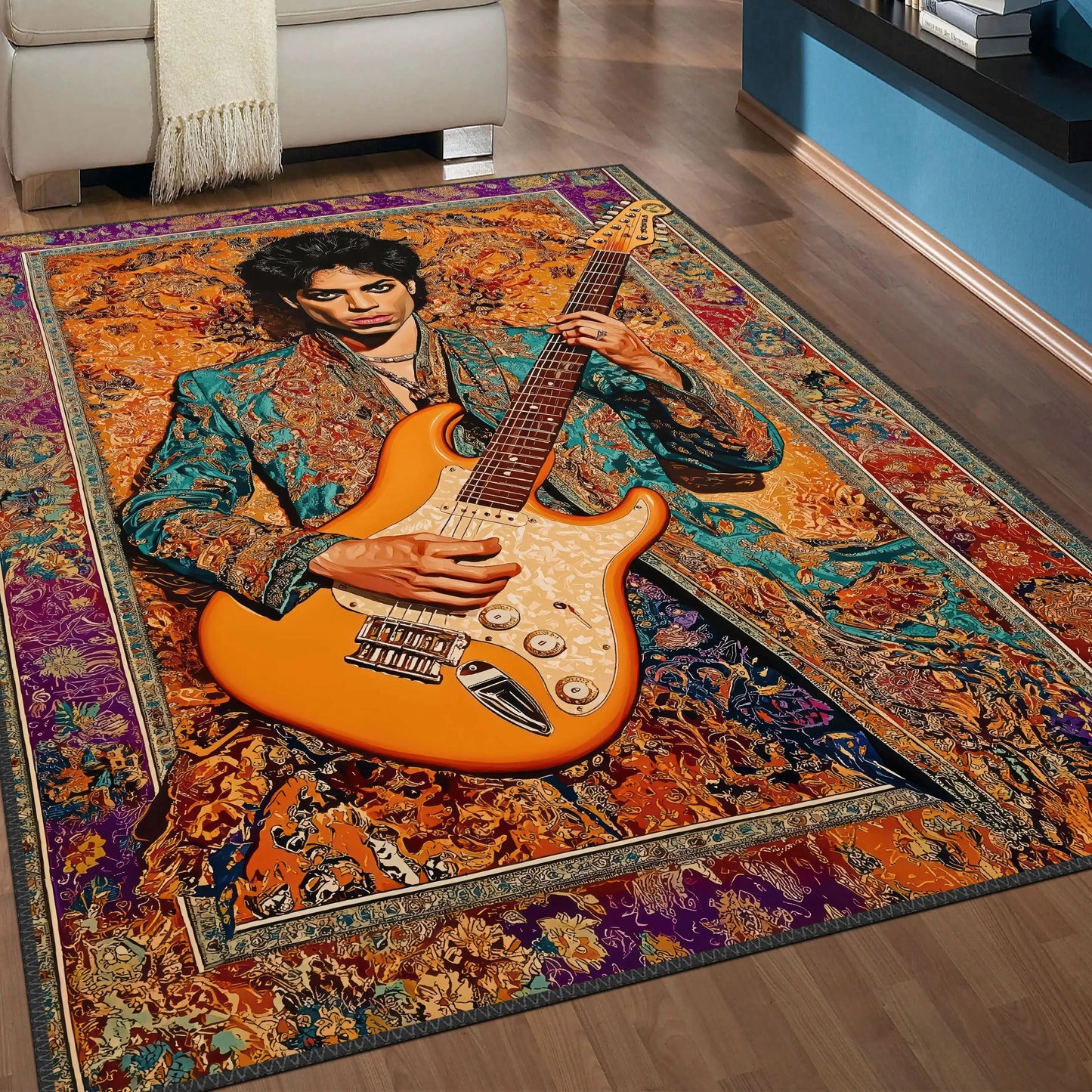 Normal Fiyat 1,400.00TLEfsanevi Prince Halısı, pop ve funk müziğin ikonik ismi Prince’in büyüleyici sahne ruhunu modern dekorasyona taşıyor. Cesur renk geçişleri, sanatsal portre detayları ve güçlü atmosferiyle bu halı, yaşam alanlarına hem stil hem de anlam kazandırır. Müzik tutkunları, koleksiyonerler ve sanatı yaşam alanına taşımak isteyenler için özel olarak tasarlanmıştır.