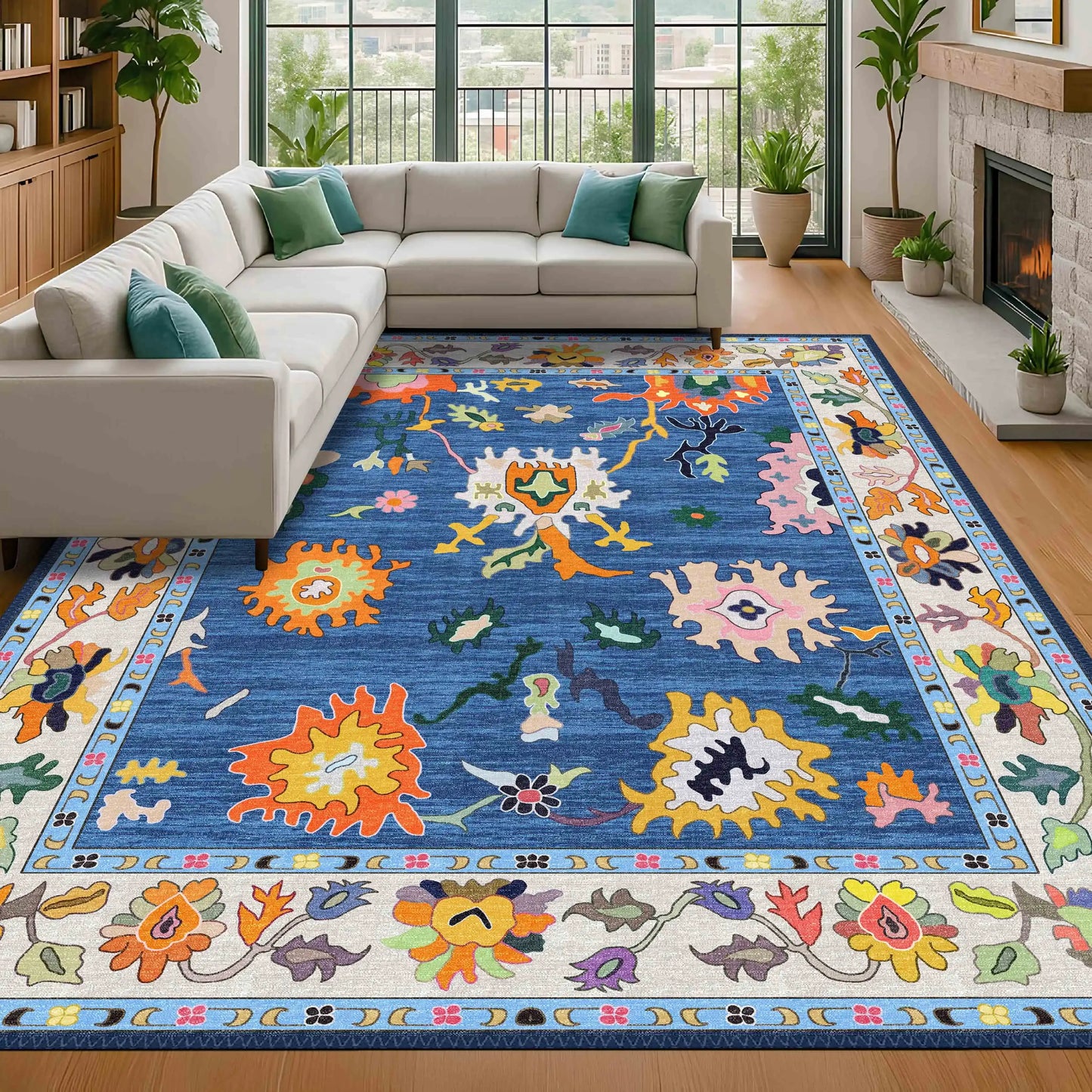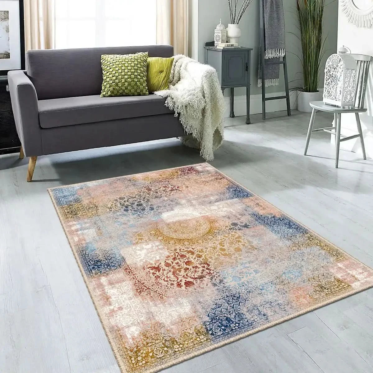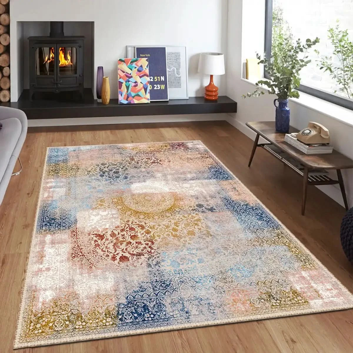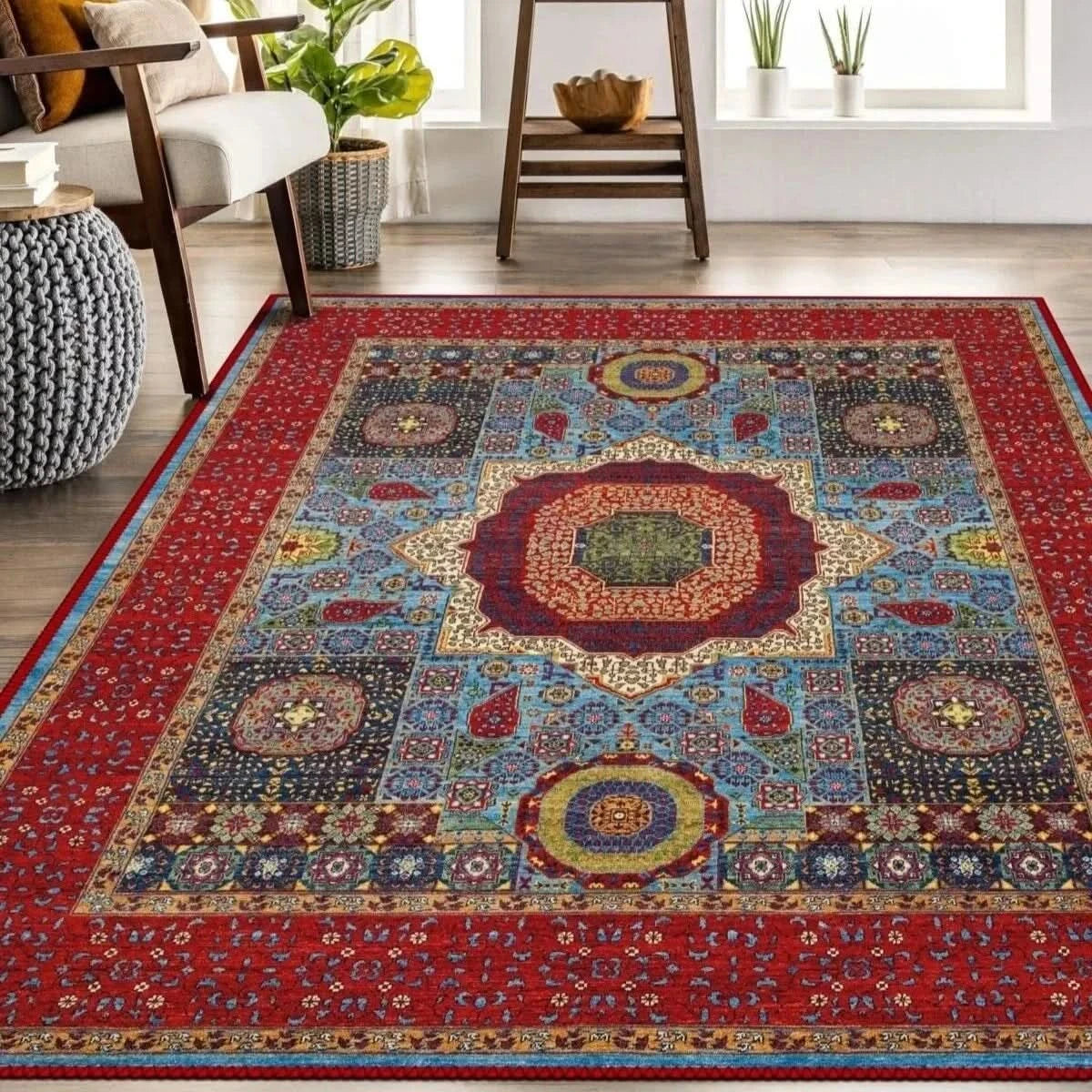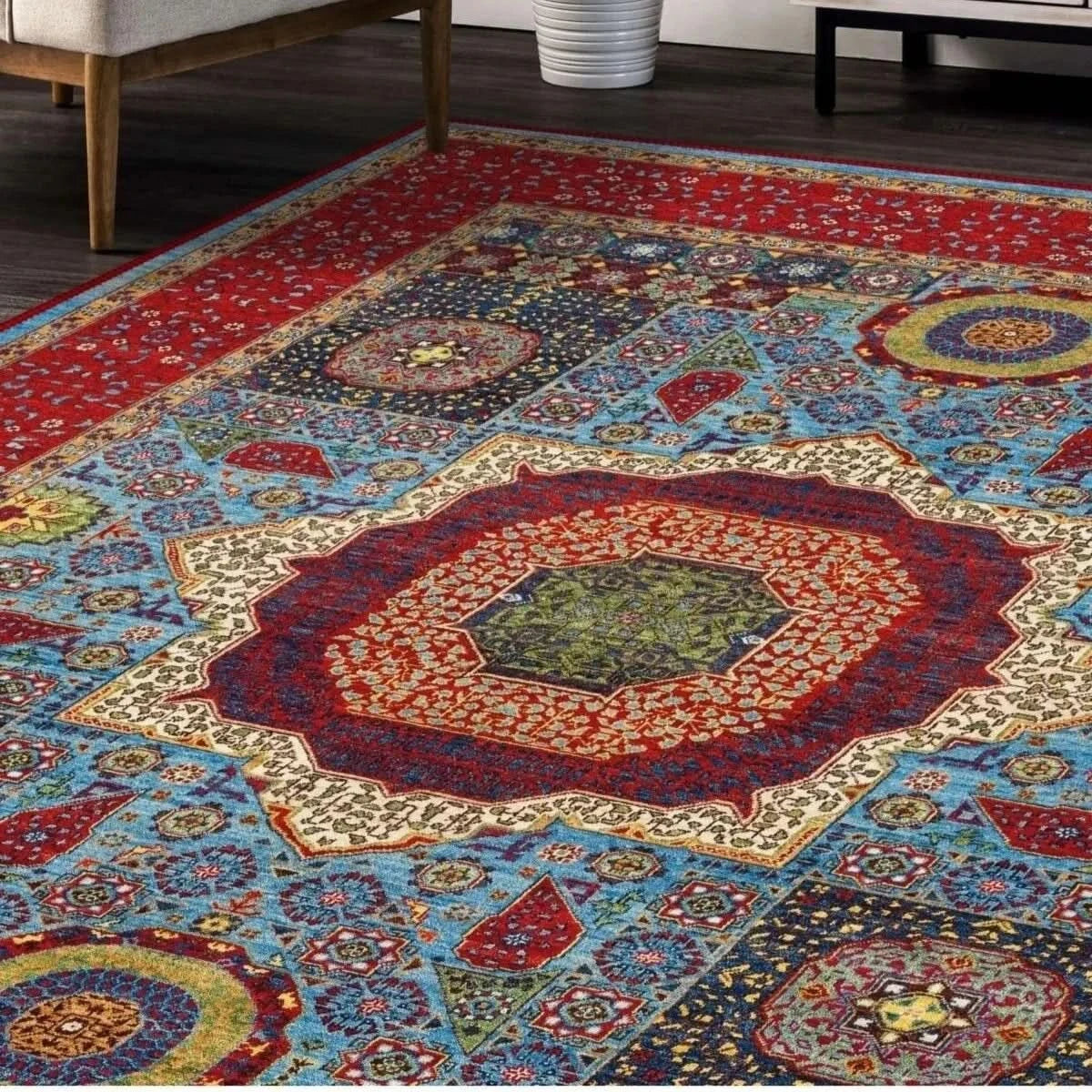 Estetik Harmoni – Mavi & Kırmızı Desenli Halı