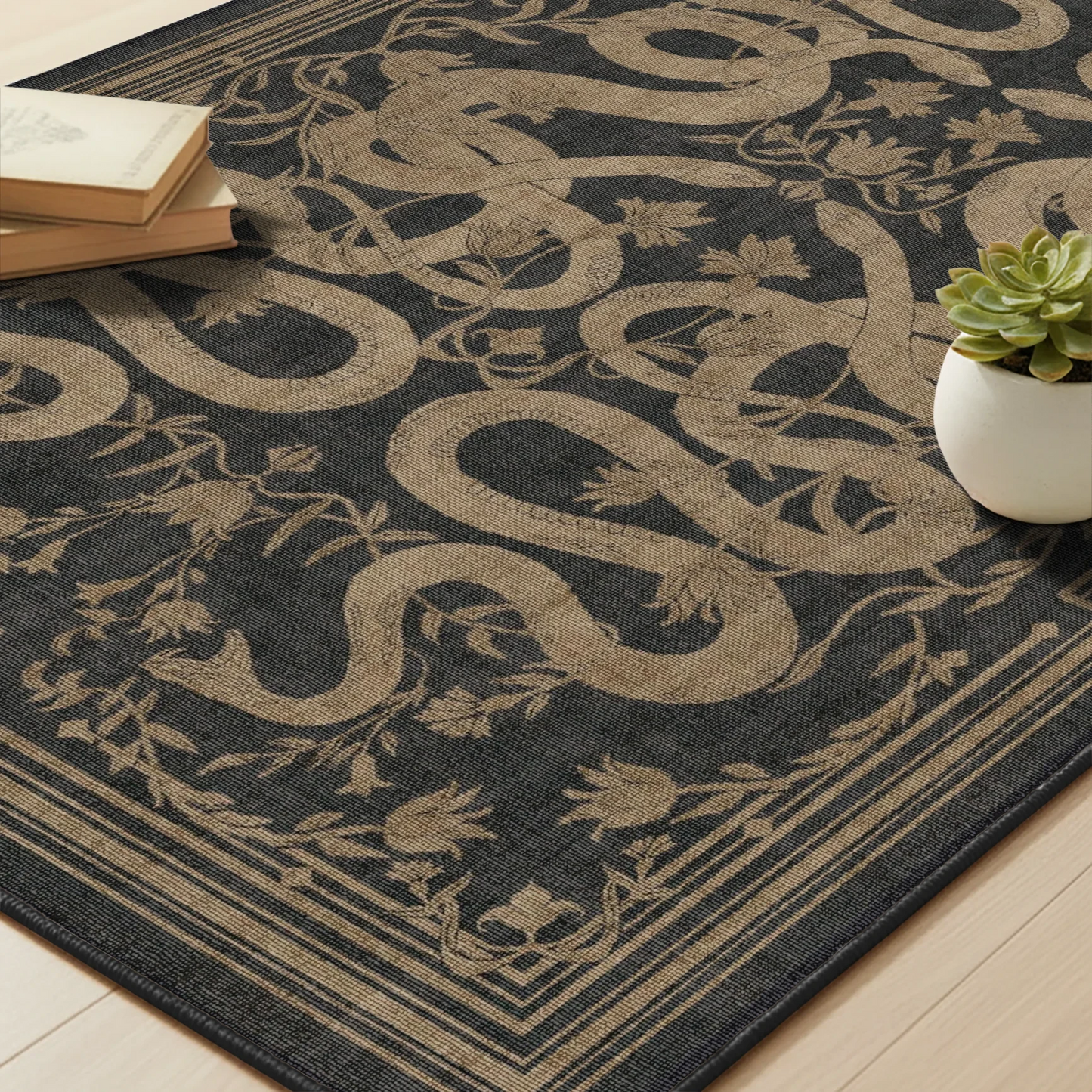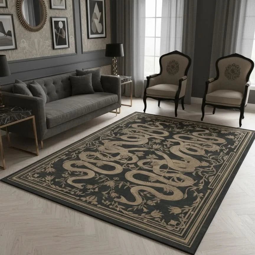 Siyah Zemin Bej Yılan Desenli Halı – MH 25