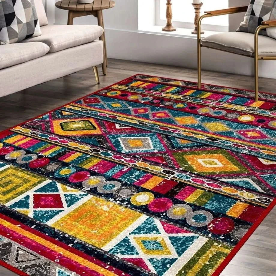 Boho Tarzı Çok Renkli Salon Halısı