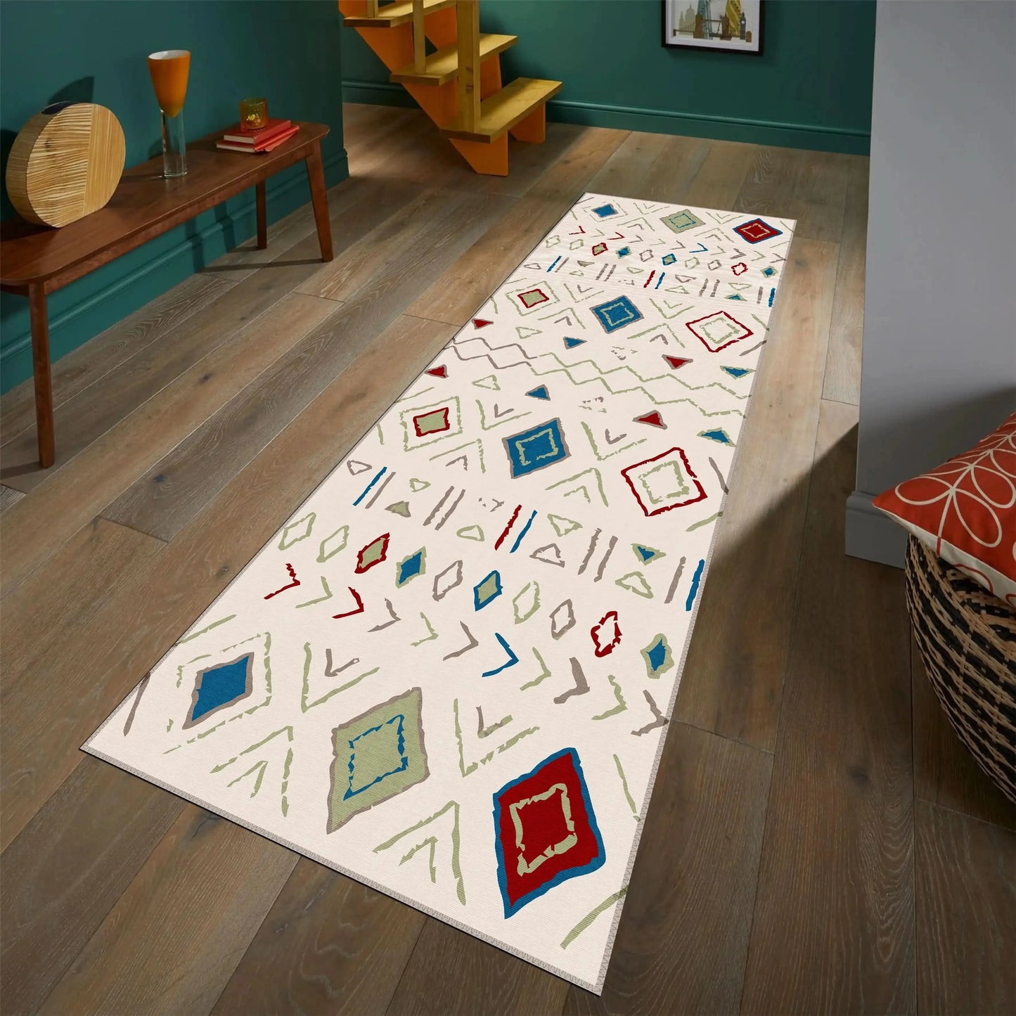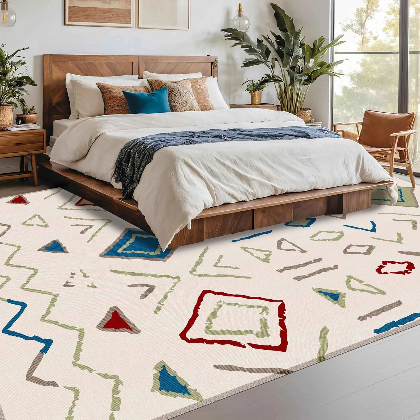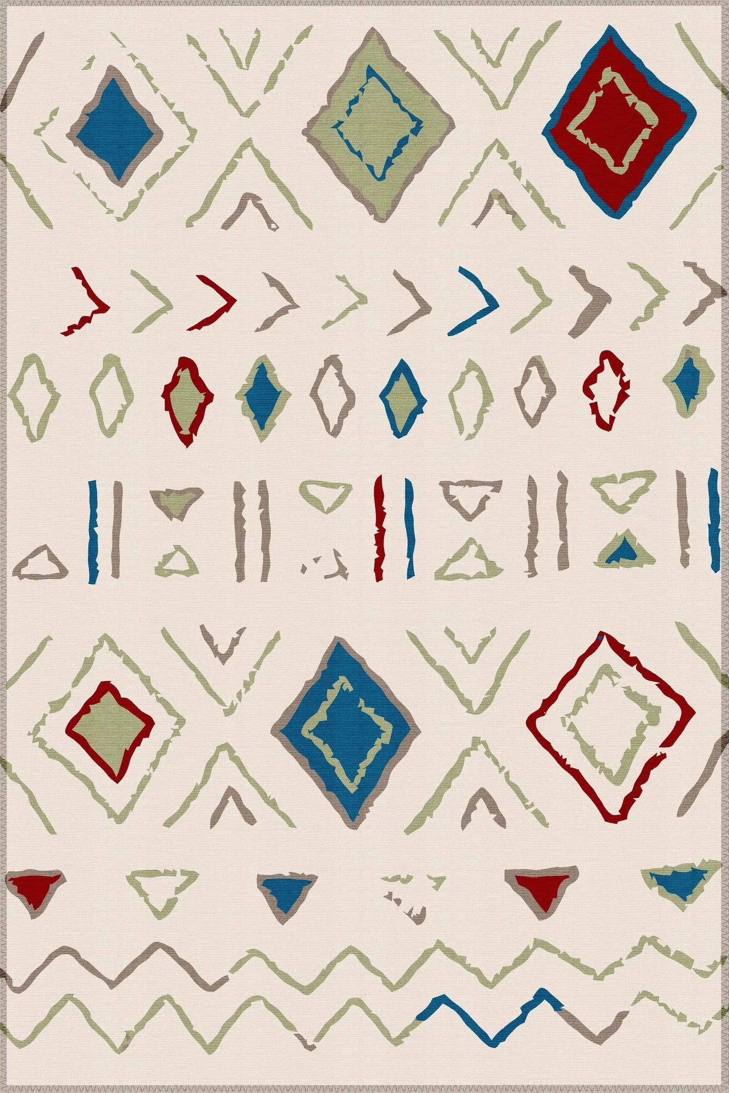Etnik Desenli Bej Zeminli Modern Halı - TK 51