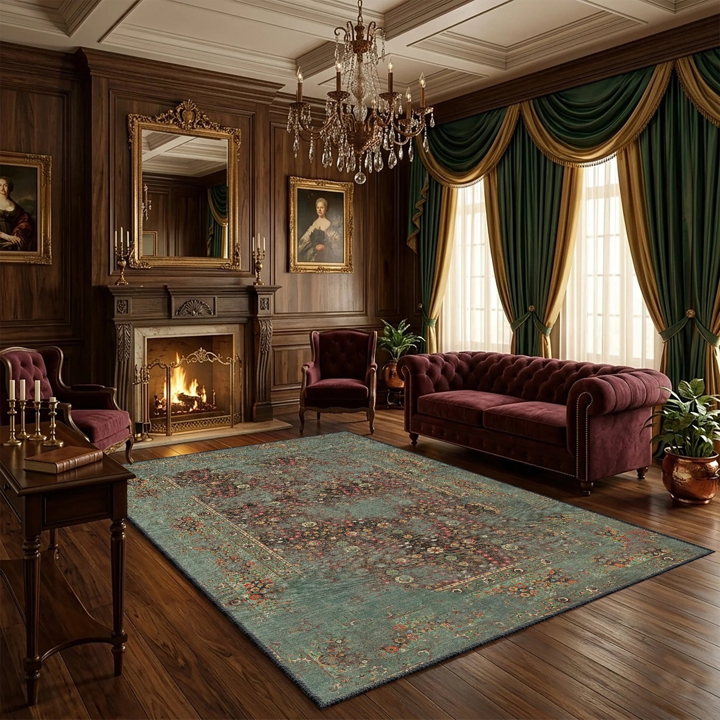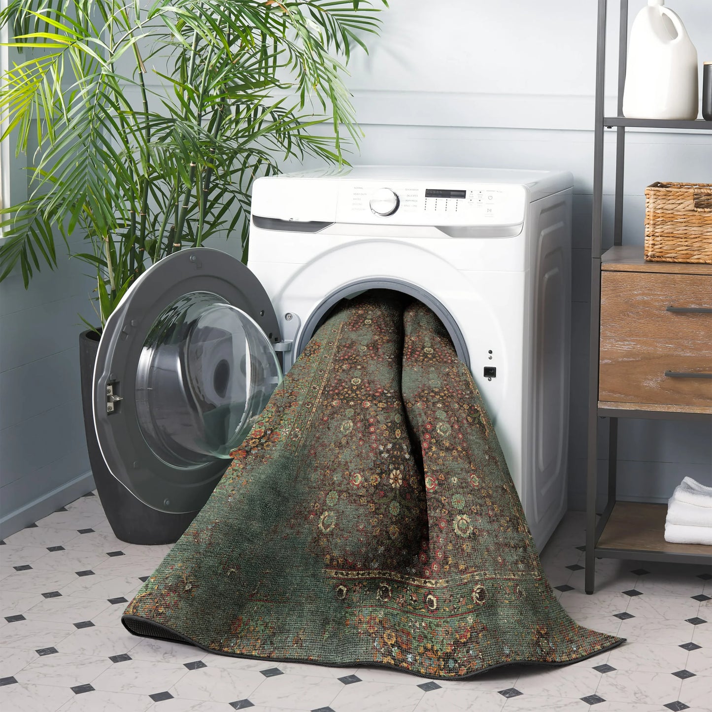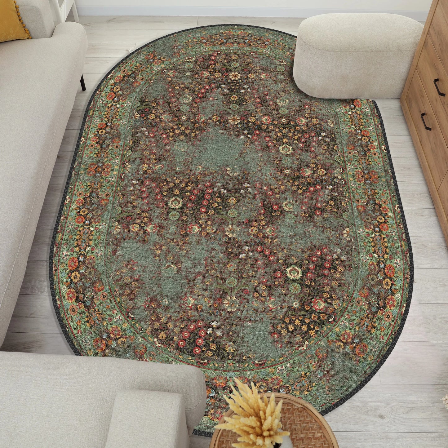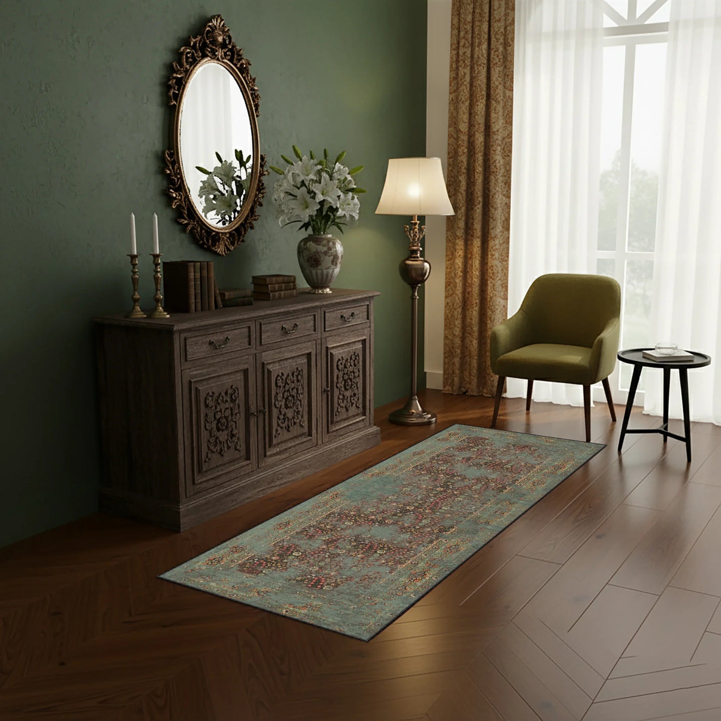 Vintage Yeşil Yıkanabilir Halı - M 100