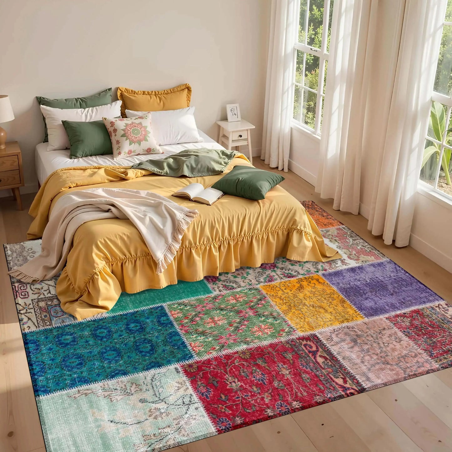 Salon, oturma odası ve geniş yaşam alanlarında dekoratif bir odak noktası oluşturan Çok Renkli Klasik Patchwork Halı; hem modern hem de geleneksel mobilyalarla rahatlıkla uyum sağlar. Zengin desen yapısı sayesinde mekânı doldurur, ortamın atmosferini canlandırır ve uzun süre keyifle kullanılabilecek bir bütünlük sunar.